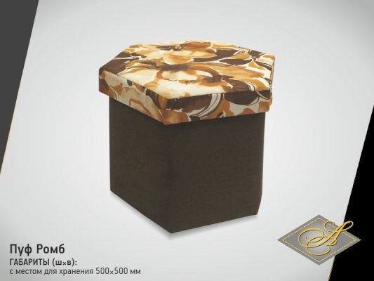 Пуф Ромб Асм - за 1 946 руб. в Бердянске. Купите на сайте berdyansk.onlinemarketmebeli.ru или по телефону 8(800)505-30-63 уже сегодня! Уточнить наличие, комплектацию, актуальную цену можно бесплатно у менеджера ежедневно. Закажите Пуф Ромб Асм до конца акции! Доступна покупка в кредит, рассрочку. Доставим со склада или на заказ.
