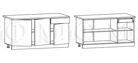 Глубина нижних шкафов без учета столешницы: 444 мм, с учетом столешницы 600 мм