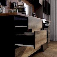 Кухня "Энигма" - это стильная модель, дизайн которой вдохновлен самой природой. Оттенки "дуб каньон" и "венге" выглядят очень натурально, словно созданы из настоящего дерева. Интегрированные срезы на фасадах заменяют традиционные ручки, они обеспечивают удобный захват, а также придают гарнитуру монолитный вид.