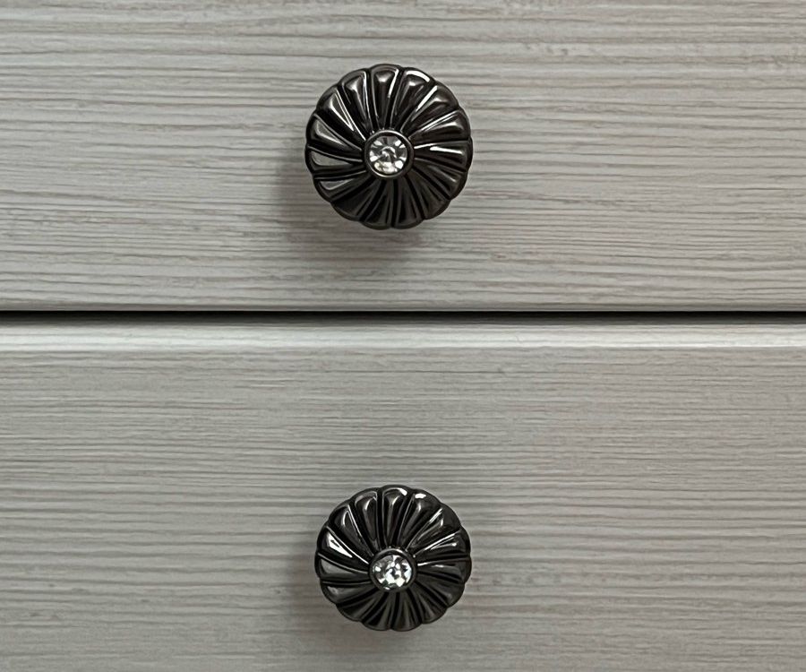 Фурнитура: Ручки металлические со стразами, шариковые направляющие на 2 выкатных ящиках