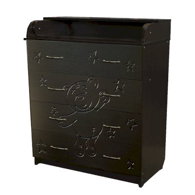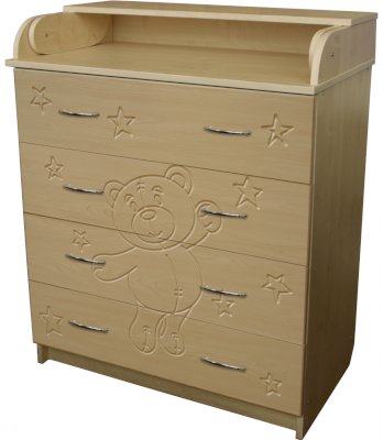 Вам понравится привлекательный внешний вид детского комода. На его лицевой части вы увидите углубленный декор в виде Мишки.