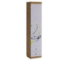 Вместительный шкаф «Форсаж» – мечта каждого мальчика. Штанга для одежды и 2-а выдвижных ящика для белья - отличное решение для детской. Эффектный принтерный рисунок на фасадах выдержан в общем стилистическом решении. Рисунок устойчив к истиранию и ультрафиолету.
