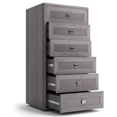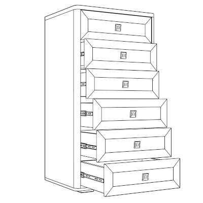 Купить высокий комод в гостиную означает получить не только удобный вместительный модуль для хранения, но и украсить интерьер, расставив на нем красивые вазы , статуэтки и картины. Стройная форма мебели благодаря небольшой ширине не займет много пространства в комнате, а благодаря конструкции с шестью вместительными ящиками в ней невероятно удобно хранить вещи.