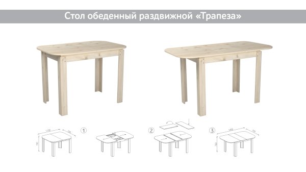Раздвижной обеденный стол Трапеза (Марибель)