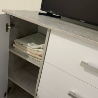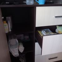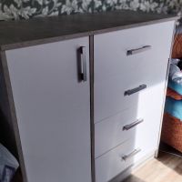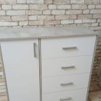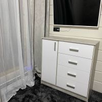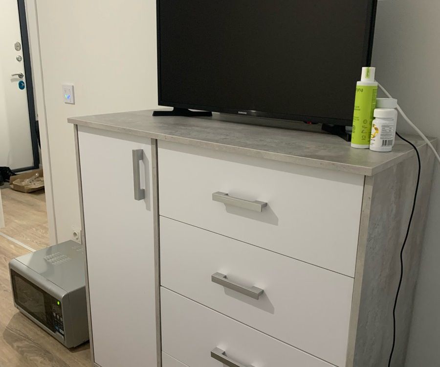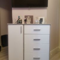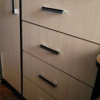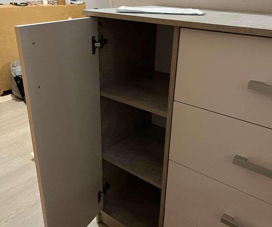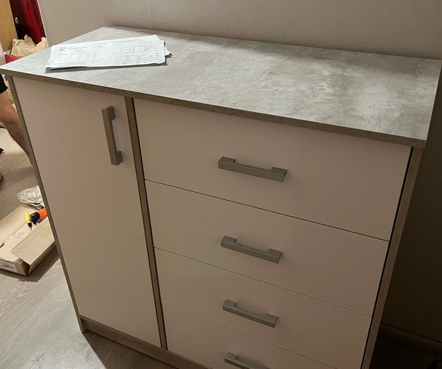 Выбирали комод по фото. Даже не ожидали, что комод окажется настолько качественным и красивым! Все детали без дефектов и сколов, что очень порадовало! Достаточно крепкая фурнитура, крепкие салазки. Приятно, что продавец очень внимательный и положил даже наклейки для того, чтобы закрыть место крепления! Однозначно рекомендую к покупке! Теперь хотим угловой шкаф и тумбу из этой же серии мебели, чтобы собрать комплект.