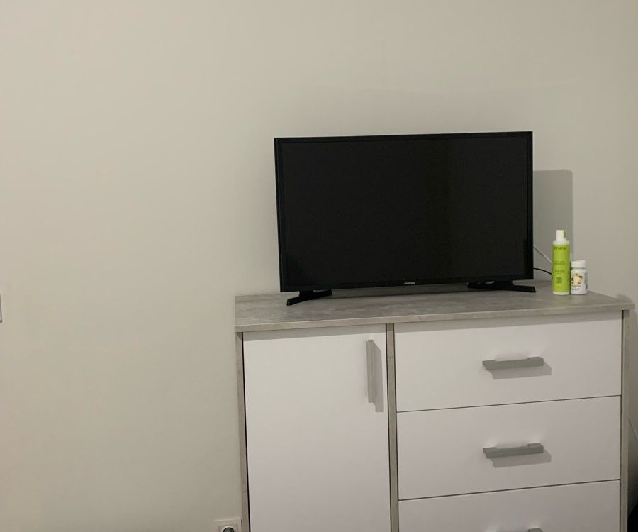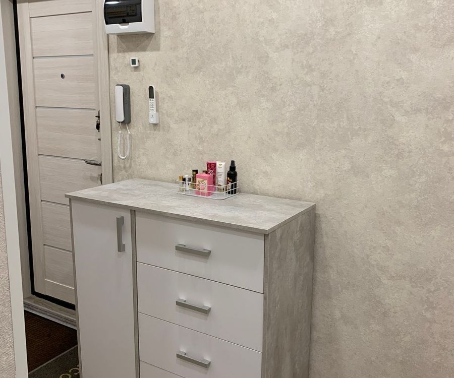 Фурнитура: ручки пластиковые, шариковые направляющие, 4 выкатных ящика, петли распашной двери без доводчиков.