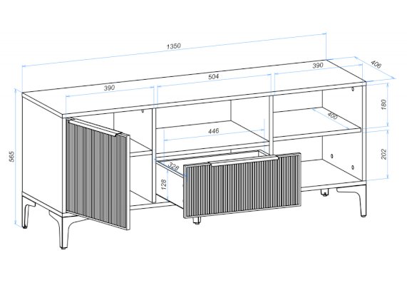 Длина ниши под телевизор, см 135
