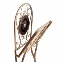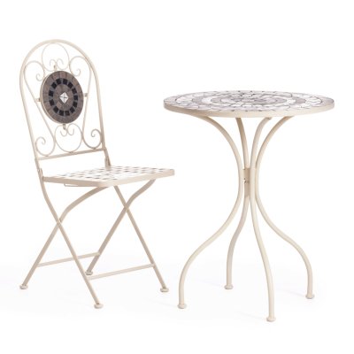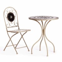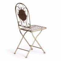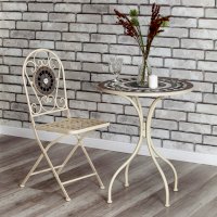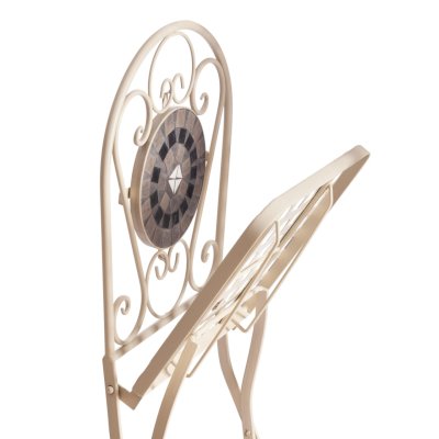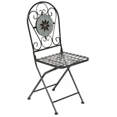 Изящная форма и изысканный дизайн компактного складного стула Secret De Maison VICENZA из коллекции BEAUJOLAIS не только выгодно выделяют его в интерьере, но и помогут создать гармоничное пространство на загородной веранде, городском балконе или приусадебном участке. Спинка, украшенная оригинальным винтажным орнаментом из мозаики и коваными узорами ручной работы, прочный каркас, изготовленный из стального сплава с напылением краски, выглядят дорого, элегантно, добавят ноты изысканности и индивидуальности в ваш интерьер. Стул легко складывается и раскладывается, не занимает много места при хранении. Модель практична, надежна, способна выдерживать большие нагрузки, устойчива к воздействию влаги, температурным перепадам и проста в уходе. Стул VICENZA прекрасно сочетается со столом Secret de Maison ROMEO и с мебелью из коллекции BEAUJOLAIS, поставляется в собранном виде.