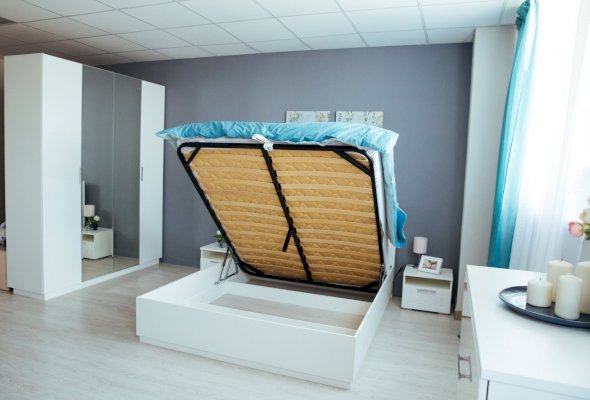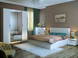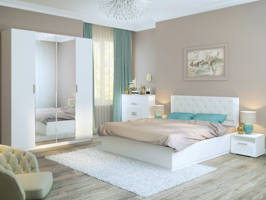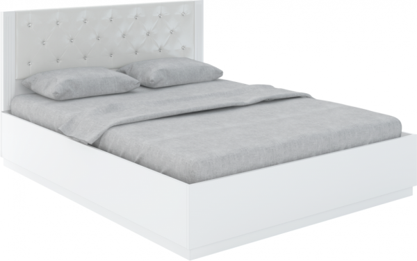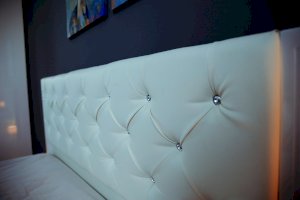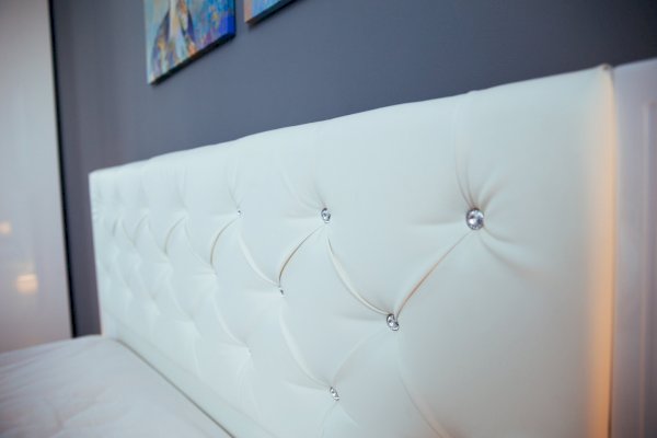 - Мягкое изголовье из матовой экокожи Galaxy New White с каретной стяжкой со стразами.