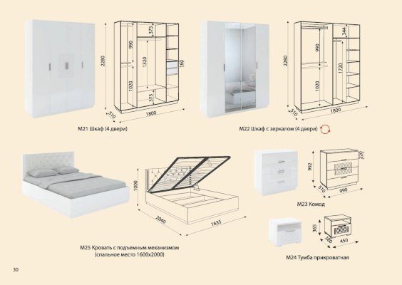 - Комод М23 и тумба М24 имеют столешницы из ЛДСП 22 мм и направляющие полного выдвижения.