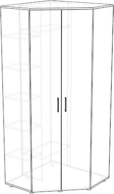 Угловой шкаф -практичная система хранения, позволяющая рационально использовать внутреннее пространство мебели для размещения всего необходимого. Наполнение шкафа состоит из секции с полками  и штанги для одежды. В некоторых зонах шкафа можно хранить крупно габаритные вещи.