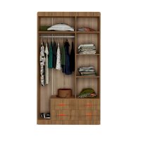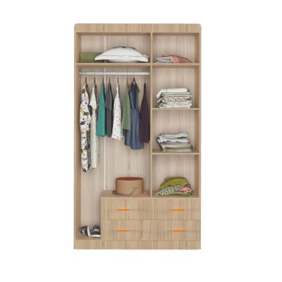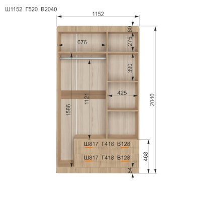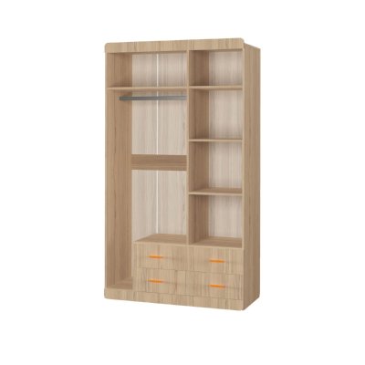 Добротный, симпатичный шкаф. Понравилось сочетание штанги, полок и выдвижных ящиков,это очень функционально.