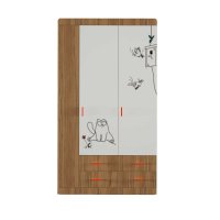 Наполнение: 2 выдвижных ящика на шариковых направляющих глубиной 450 мм, петли с доводчиком, штанга для одежды, полки.