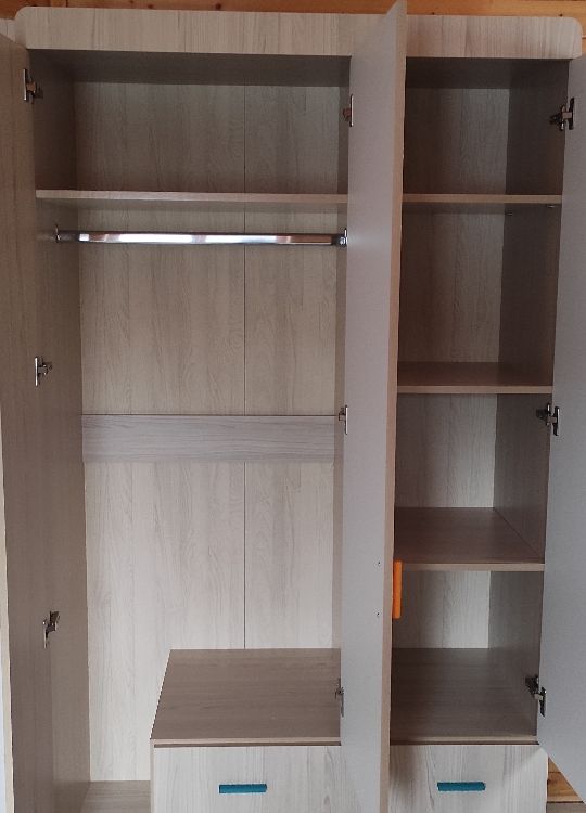 Шкаф хороший, вместительный и красивый, полки, штанга, выдвижные ящики, все что нужно для хранения вещей. Плюс быстрая доставка, раньше чем ожидали.