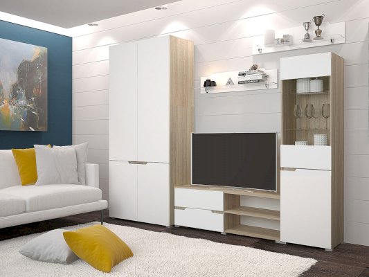 Модульная гостиная Анталия Сонома/Белый софт (Горизонт)