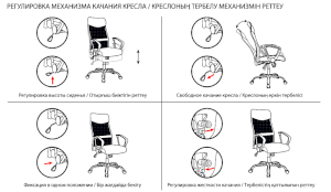 Кресло оснащено механизмом качания «топ-ган» с регулировкой под вес пользователя и возможностью фиксации спинки в рабочем положении.