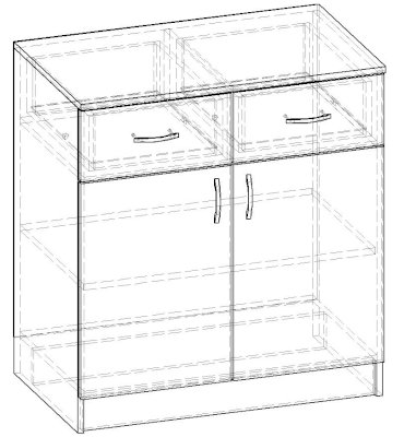 • Корпус, полки и фасады изготовлены из ЛДСП 16 мм с кромкой ПВХ 0,4 мм.