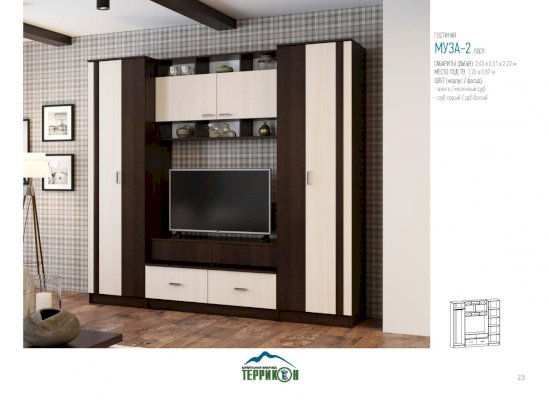 Гостиная Муза-2 (Террикон) - за 29 064 руб. в Бердянске. Купите на сайте berdyansk.onlinemarketmebeli.ru или по телефону 8(800)505-30-63 уже сегодня! Уточнить наличие, комплектацию, актуальную цену можно бесплатно у менеджера ежедневно. Закажите Гостиная Муза-2 (Террикон) до конца акции! Доступна покупка в кредит, рассрочку. Доставим со склада или на заказ.