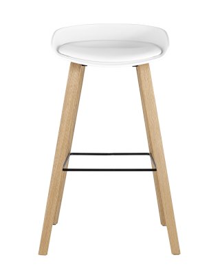 Барный стул Libra Soft белого цвета создан из пластика и дерева. Гармоничное сочетание этих материалов – основа интерьеров в стиле лофт, минимализм и других современных направлений. Модель выглядит очень элегантно и лаконично, благодаря четким геометрическим формам, отсутствию подлокотников и полноценной спинки. Высота изделия соответствует стандартной барной стойке и составляет 75 см.