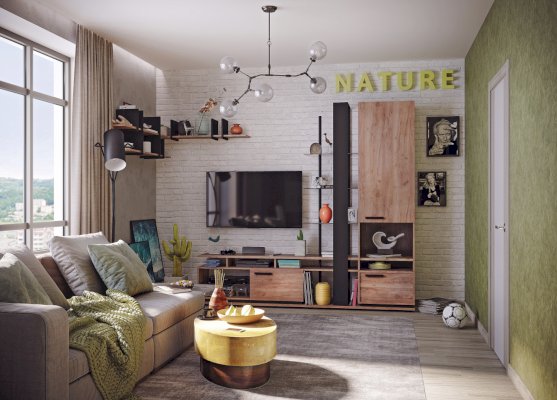 Брутальная коллекция Nature отвечает всем требованиям творческих, молодых и динамичных людей, которые ценят свободу и пространство. Выполненные в современном стиле модули практичны, функциональны, обладают "характером" и стилем.