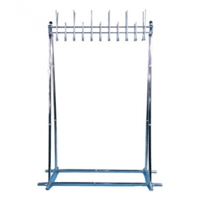 Групповая вешалка на 22 крючка. Вешалка выполнена из оцинкованной стали с полимерным покрытием. Крючки вешалки выполнены из трубы диаметром 10 мм. Вешалка поставляется в разобранном виде, в картонной таре. Эта модель вешалки может использоваться как фрагмент для обустройства гардеробных комнат.