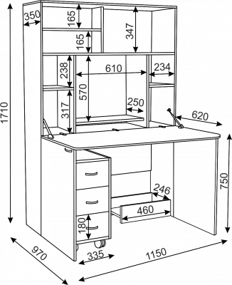 | Комплектация | местодля принтера (техники) / надстройка / ниша под системный блок / тумбы |