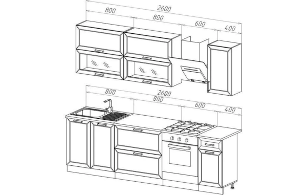 Глубина нижних шкафов со столешницей: 600 мм