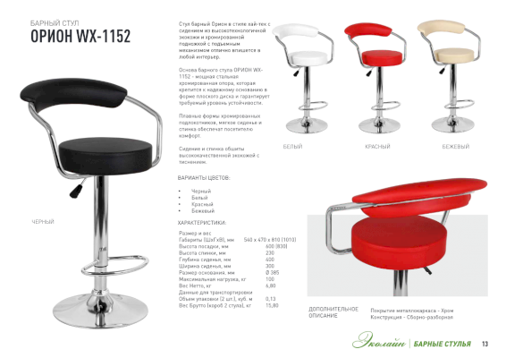Барный стул Орион (Эколайн) - за 8 257 руб. в Бердянске. Купите на сайте berdyansk.onlinemarketmebeli.ru или по телефону 8(800)505-30-63 уже сегодня! Уточнить наличие, комплектацию, актуальную цену можно бесплатно у менеджера ежедневно. Закажите Барный стул Орион (Эколайн) до конца акции! Доступна покупка в кредит, рассрочку. Доставим со склада или на заказ.