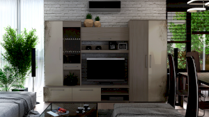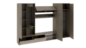 Изделие имеет максимально продуманную конструкцию – шкаф с полками, шкаф с штангой для одежды, открытые и закрытые секции позволят хранить медийную технику и личные вещи. Откидные фасады оборудованы газлифтами, что добавит в эксплуатацию мебели еще больший комфорт, а открывание сделает плавным и бесшумным.