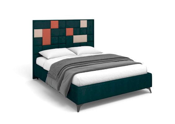 Необычная дизайнерская кровать со съемными мягкими панелями 2-х форм: квадрат и прямоугольник. Панели прочно крепятся с помощью липучки велкро к изголовью и позволяют создавать бесконечное множество комбинаций по цвету и форме.