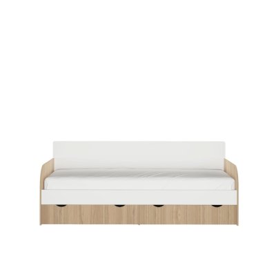 Кровать пришла в разобранном виде. Упаковано отлично - видимо на заводе сразу фасуют. При распаковке минимум запаха и стружки древесной. Сборка своими силами без проблем - все отверстия на месте, крепежа с запасом. После сборки нигде ничего не скрипит. Основание кровати сплошное, с "щелями", чтобы матрас дышал. Углубление под матрас 5 см. Ящики объёмные 53х93х16 см, направляющие недорогие, без доводчиков, но вполне рабочие. Из недостатков (если сильно придираться) на белых фасадах в паре углов "сколота" плёнка, покрывающая фасад. Но это прям 1х1 мм сколы - нам не критично. Белая плёнка, покрывающая фасады, весьма тонкая. Фактура чуть шершавая, напоминает бумагу. Следы грязных пальцев после установки вытерли влажной тряпкой. Но насколько её хватит в процессе эксплуатации и как будет мыться не понятно, влагостойкой не выглядит. Резюмируя - и родители и ребёнок довольны. Для нас плюсов больше чем минусов.