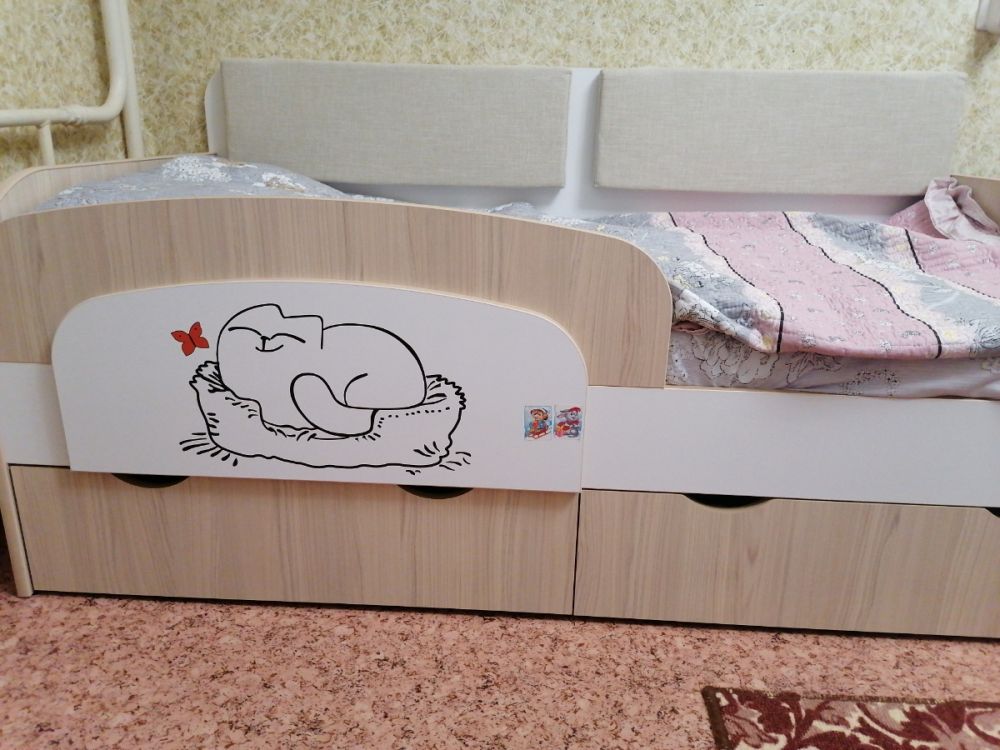 Долго искали кровать, остановились на этой модели. Понравилась по цене и то, что есть встроинные ящики. Купили и не прогадали) Очень хорошая кровать, ребенок в восторге. Сделана качественно, с вместительными крепкими ящиками для постельного или игрушек, бортиками, милой кошечкой! Очень довольны, рекомендую!
