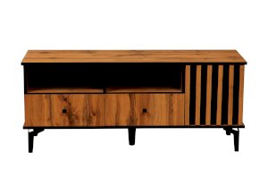 Даже если у вас нет ТВ, то тумба под ТВ должна быть обязательно! Ведь на нее можно поставить все, что захотите - большую плазменную панель, стереосистему или и то, и другое – габариты тумбы это позволяют! В дизайне поддерживается концепция асимметричности. Два отсека-близнеца: открытая полка и под ней выдвижной ящик плюс просторный ящик за распашной дверцей.