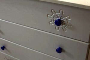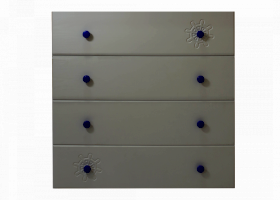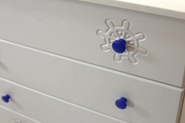 Вам понравится привлекательный внешний вид детского комода. На его лицевой части вы увидите углубленный декор в виде Штурвала.