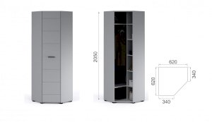 Угловой шкаф выполнен в современном стиле – сочетает в себе функциональность и эффектный внешний вид: строгая горизонтальная фрезеровка фасадов, ручки и задняя стенки контрастного черного цвета. Глянцевые белые фасады High Gloss из МДФ наполняют комнату светом, делают ее просторнее. Внутри предусмотрены секции для белья и отделение со штангой. Шкаф позволяет рационально использовать пространство и будет хорошо смотреться даже в небольшой комнате, служит связующим звеном для составления угловой системы хранения. Идеально компонуется со всеми модулями системы Йорк.