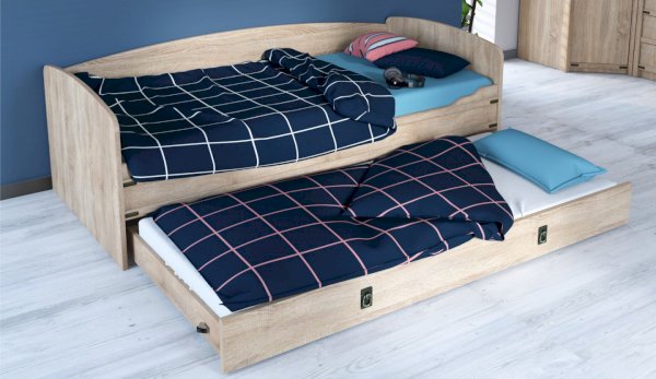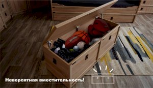 Ящик для белья можно использовать как дополнительное спальное место. Легко выдвигается за счет множества упоров в виде роликов.