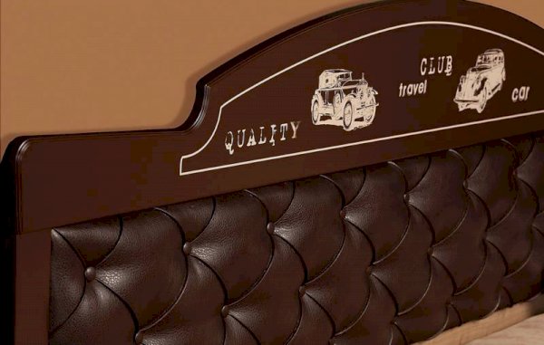 • Мягкая спинка кровати обтянута гипоаллергенной искусственной кожей и утянута пуговицами.