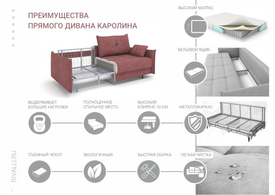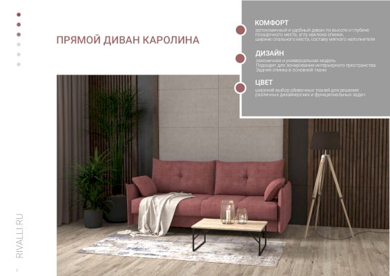 Прямой диван Каролина (Rivalli) - за 106 616 руб. в Бердянске. Купите на сайте berdyansk.onlinemarketmebeli.ru или по телефону 8(800)505-30-63 уже сегодня! Уточнить наличие, комплектацию, актуальную цену можно бесплатно у менеджера ежедневно. Закажите Прямой диван Каролина (Rivalli) до конца акции! Доступна покупка в кредит, рассрочку. Доставим со склада или на заказ.