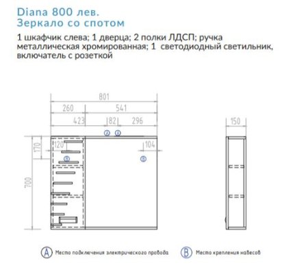 Зеркало Diana 800 левое со спотом (Виго) - за 9 986 руб. в Бердянске. Купите на сайте berdyansk.onlinemarketmebeli.ru или по телефону 8(800)505-30-63 уже сегодня! Уточнить наличие, комплектацию, актуальную цену можно бесплатно у менеджера ежедневно. Закажите Зеркало Diana 800 левое со спотом (Виго) до конца акции! Доступна покупка в кредит, рассрочку. Доставим со склада или на заказ.