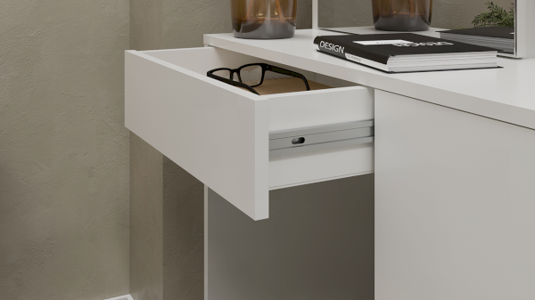 Стол туалетный «Вайт» в универсальной текстуре «Белый Ясень», позволит создать основу для дальнейшего оформления комнаты в различных стилях.