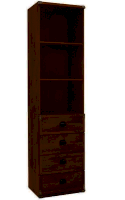 Шкаф разделен на 2 отделения: верхнее –открытое отделение с полками, нижнее – 4 выдвижных ящика на металлических роликовых направляющих