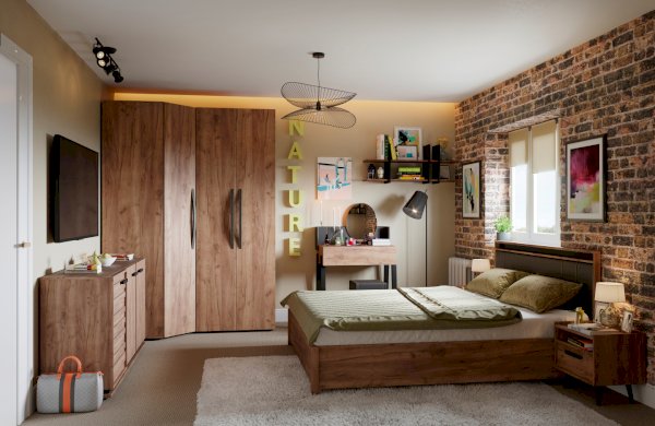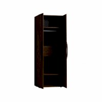 Распашной шкаф для одежды - классический шкаф для спальни. Фасады с ручками, укутанными в экокожу. Шкаф комплектуется стационарной штангой длиной 757 мм, на которой можно разместить до 10 плечиков с верхней одеждой, а также двумя полками. Регулируемые опоры компенсируют незначительные неровности пола.