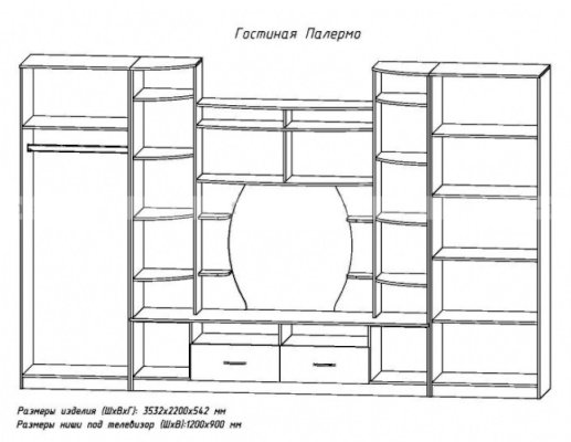 Ниша под ТВ (ШхВ): 1200х900 мм
