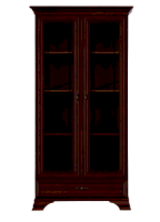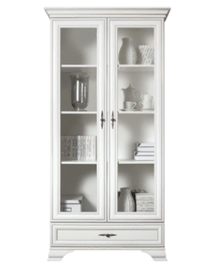2 распашные двери со стеклянными вставками и 1 выдвижной ящик на металлических роликовых направляющих.