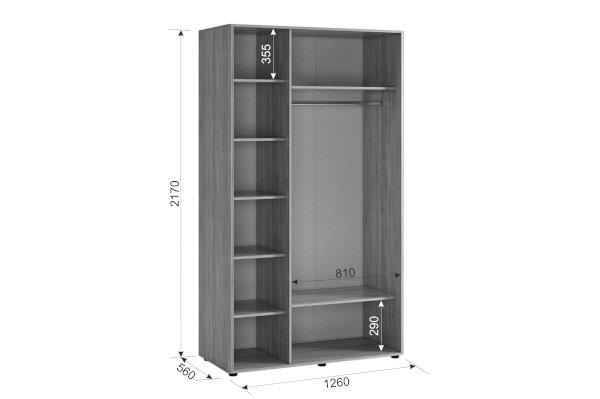 Этот трехстворчатый шкаф из серии Зара 2 идеально подойдет для тех, кто ценит как элегантность, так и практичность. Прекрасно дополнит интерьер вашей комнаты благодаря своему современному и стильному дизайну. Отличительной чертой дизайна являются закругленные углы, что обеспечивает безопасное использование. Кроме того, центральный фасад декорирован зеркалом, а контраст между цветами корпуса и фасадов придает шкафу особую эксклюзивность.