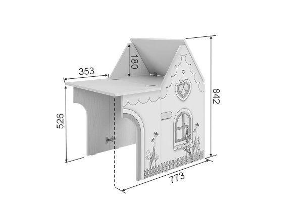 Стол раскладной займет мало места в комнате. Крыша домика легко раскладывается и превращается в стол, как для 1 ребенка, так и для 2-х детей. Так же может служить местом для игры в куклы, в прятки и другие всевозможные забавы. При закрытой крыше- это прекрасный стеллаж для хранения предметов творчества.