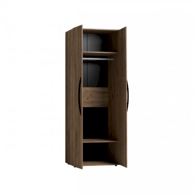 Двухстворчатый шкаф для одежды 54 прекрасно подойдет для хранения одежды и белья в спальне. Гладкие фасады и натуральный декор шкафа привнесут в комнату особый уют и теплоту, а металлические ручки-скобки вместе с 2 мм кромкой ПВХ обеспечат высокую надежность изделия. Распашной шкаф комплектуется стационарной штангой длиной 757 мм, на которой можно разместить до 10 плечиков с верхней одеждой, а также двумя полками - сверху и снизу. Регулируемые опоры компенсируют незначительные неровности пола.