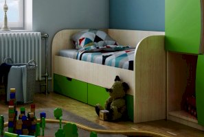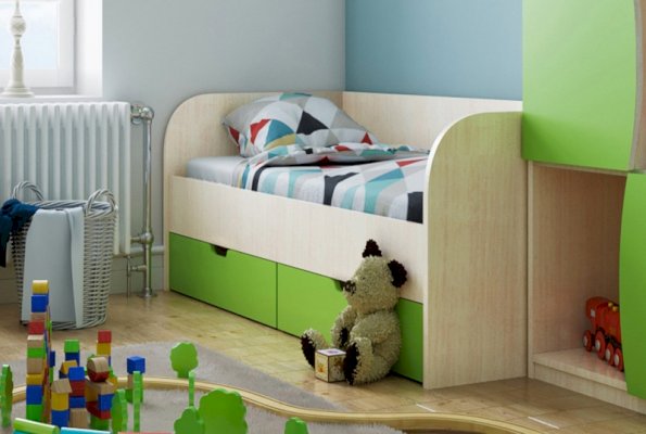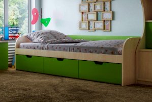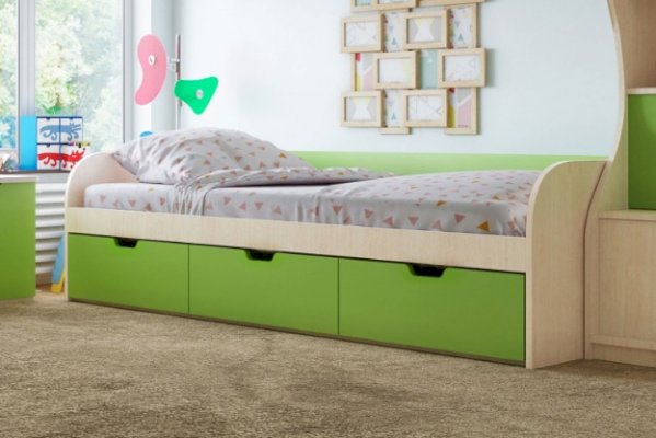 - Спальное место - 80х200 см: ДхГхВ 2.03x0.85x0.6 м. Под кроватью 3 ящика для белья.