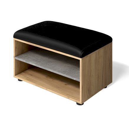 Недорогая обувница с открытыми полками и мягким сидением для тех, кому не нужно размещать большое количество обуви.