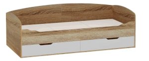 Топчан в скандинавском стиле со скругленным изголовьем и высокой спинкой имеет два больших ящика, с помощью множества роликов его легко выдвинуть. Для безопасности и удобства открывания выдвижной ящик вместо ручек оснащен выемками на лицевой части фасада. Высокая спинка в топчане предохраняет от соприкосновения с холодной стеной во время сна. Пользоваться кроватью может взрослый и ребенок любого возраста, так как она имеет размеры стандартной кровати 90х200см, устойчивую конструкцию и нейтральный для интерьера цвет. Идеально компонуется со всеми модулями системы Стелс. Мебель выполнена из высококачественных экологичных материалов.